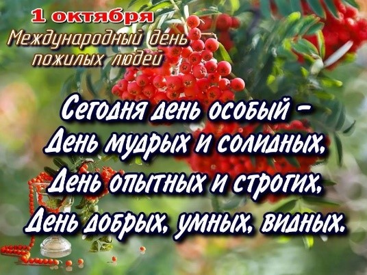 День пожилого человека — международный праздник, который отмечается ежегодно 1 октября. Он был официально провозглашен Генеральной Ассамблеей ООН в 1990 году с целью привлечь внимание к вопросам улучшения качества их жизни, обеспечить защиту их прав и выразить благодарность за вклад в развитие общества