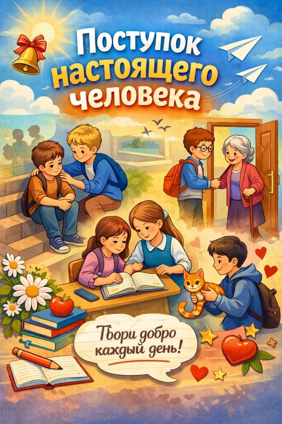 Что такое подвиг? Это не всегда громкие слова, медали и страницы в учебниках истории. Настоящий подвиг часто живет рядом с нами — в поступках обычных людей, которые каждый день делают мир лучше. Мы привыкли думать, что герои — это люди прошлого. Но для школьников важнее понимать: настоящие примеры есть рядом, и они ближе, чем кажется. Сегодня быть настоящим человеком — это выбор. Выбор не пройти мимо. Выбор помочь. Выбор остаться человеком в любой ситуации.